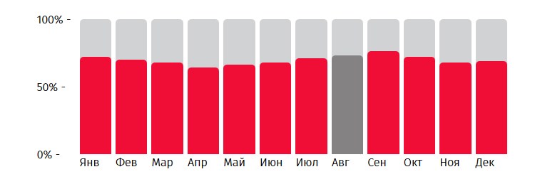 Ниже находится диаграмма, которая показывает степень популярности направления в каждый месяц в году. Контролируйте уровень популярности и экономьте на билетах.
