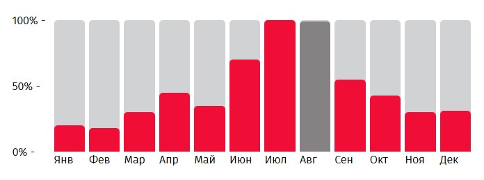 На данной странице приведена диаграмма, которая отражает востребованность маршрута в те или иные месяцы. Применяйте данные статистики, чтобы определить наиболее выгодные условия приобретения билетов.