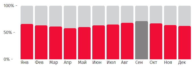 Спады спроса наблюдаются в октябре, ноябре, первой половине декабря и в период с февраля по апрель. Все остальные месяца отличаются резким повышением популярности направления, а пиком становится лето и сентябрьские дни. Используйте наши диаграммы спроса и планируйте поездки экономно!